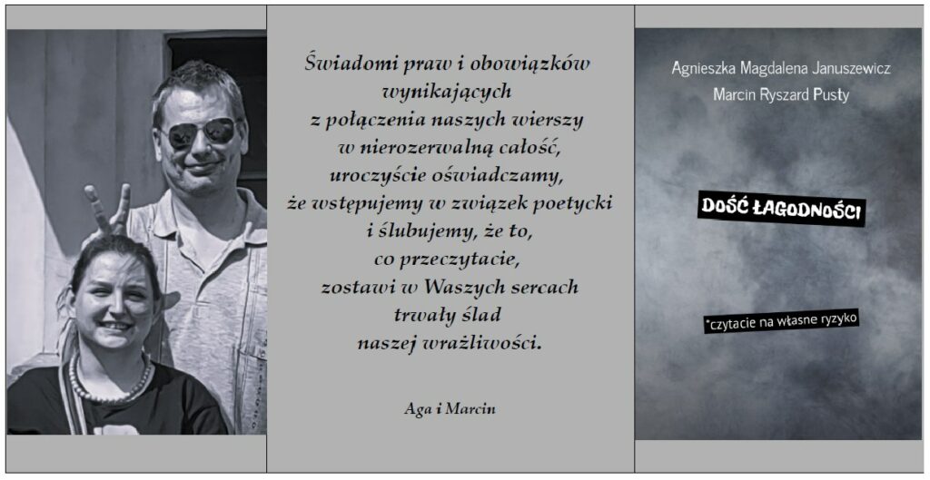 Jeśli ktoś z Was, Kochani, czułby jednak potrzebę bliższego spotkania ze zrębkiem naszej twórczości wspólnej, to może ją zaspokoić …tutaj: https://ridero.eu/pl/books/dosc_lagodnosci/